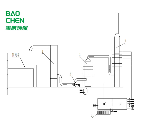 本系統(tǒng)為隧道窯除塵、脫硫、脫硝裝置,用于捕集在隧道窯生產(chǎn)過程中產(chǎn)生的煙氣,處理后使其達到國家環(huán)保要求。